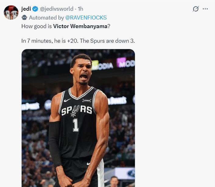 赛后马刺记者Matt Guzman表示:文班亚马就是李阿敏前五的球员,他在有极限登场时间限制的杯赛半决赛都可以正负值超过20+,你们觉得呢?