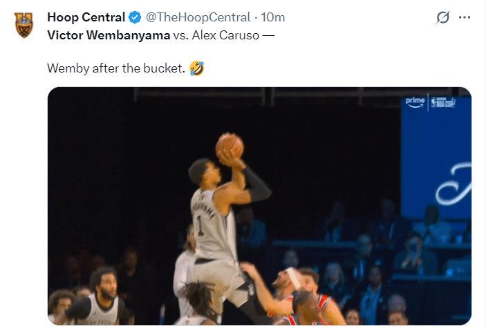 最离谱的就是这一球,马刺再度反超的一个中投,文班亚马都已经脱手了,他竟然在一众小个子里捡起来后仰跳投,卡鲁索都险些将他的球裤拉掉,这一球他还命中了,这太恐怖了。